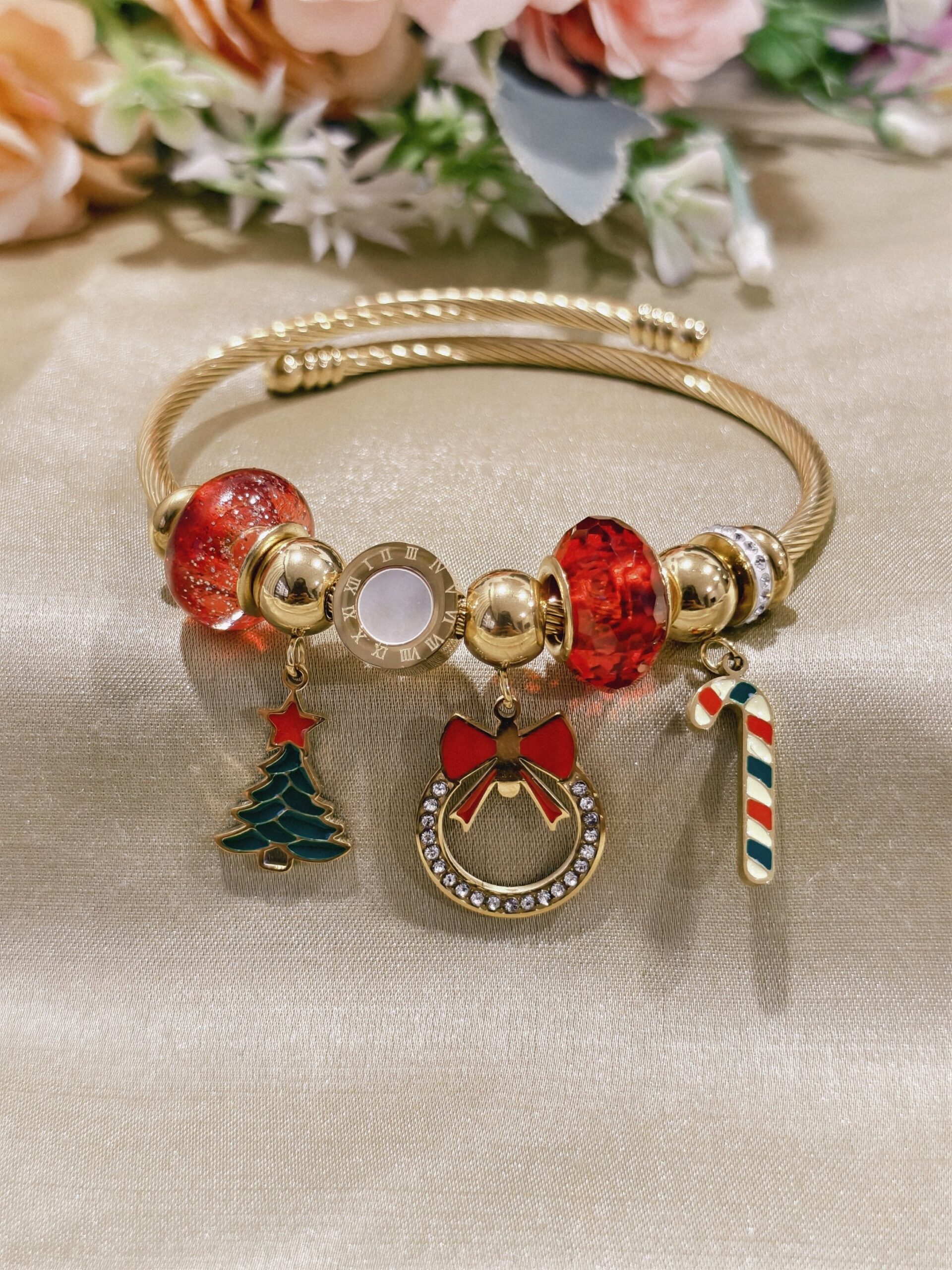 A festive anti-tarnish charm bracelet featuring Christmas-themed charms and sparkling beads—perfect for adding holiday cheer to your look.