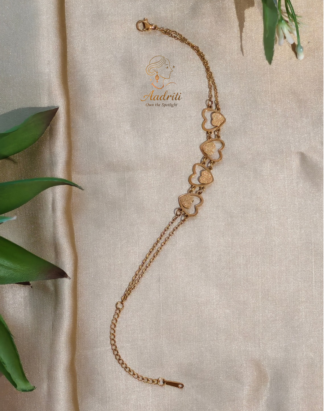 The double-chain design enhances its delicate look while providing a secure and comfortable fit. Its adjustable clasp ensures it sits perfectly on your wrist, making it ideal for daily wear as well as special occasions.