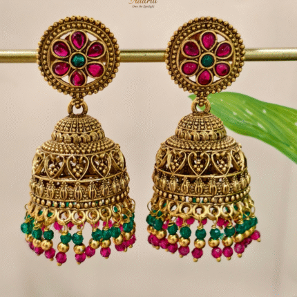 Grace that glows with every turn — these Royal Radiance Jhumkas blend timeless tradition with a touch of royal charm.